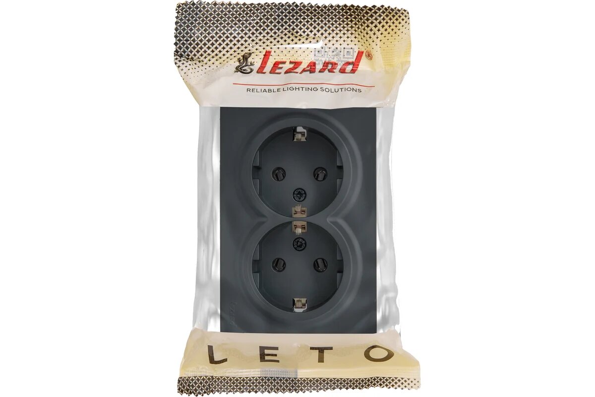 Lezard LETO Розетка двойная с/з закрытый корпус ПБТ графит 752-3400-127B: сравнение цен, характеристики, фото, актуальное наличие и цены.
