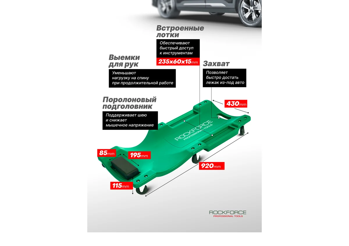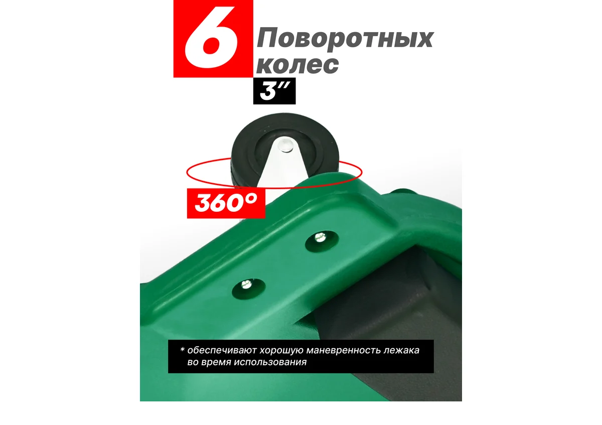 Купить Лежак для автослесаря ROCKFORCE, пластиковый, на 6 колесах, зеленый с доставкой по всей России.