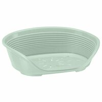 Уютный пластиковый лежак овальной формы для использования в помещении, идеально подходит для собак и кошек. Обратите ваше внимание на дизайн лежака: он имеет бортики сзади и по бокам, спереди идет открытая зона с ровной поверхностью. Лежак оснащен антискользящими опорами, а нижняя часть имеет перфорацию для циркуляции воздуха.