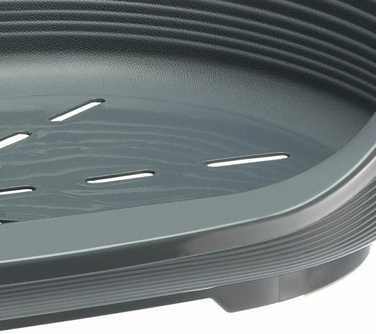 Уютный пластиковый лежак овальной формы. Обратите ваше внимание на дизайн лежака: он имеет бортики сзади и по бокам, спереди идет открытая зона с ровной поверхностью. Лежак оснащен антискользящими опорами, а нижняя часть имеет перфорацию для циркуляции воздуха.