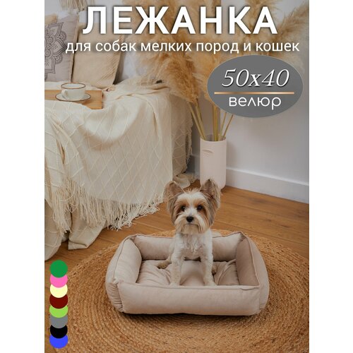 Лежанка 50х40 см, KLV_Shop, для собак и кошек, велюр, для мелких пород.
