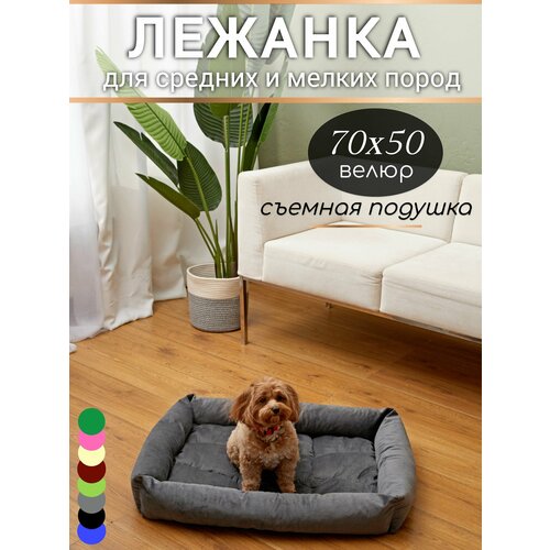Лежанка 70х50 см, KLV_Shop, велюр, съемный матрасик, для собак средних и мелких пород.
