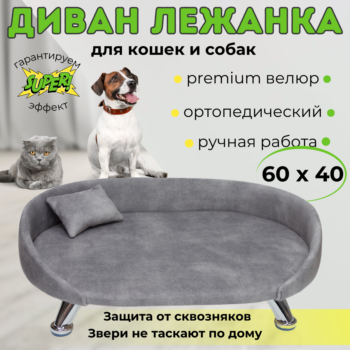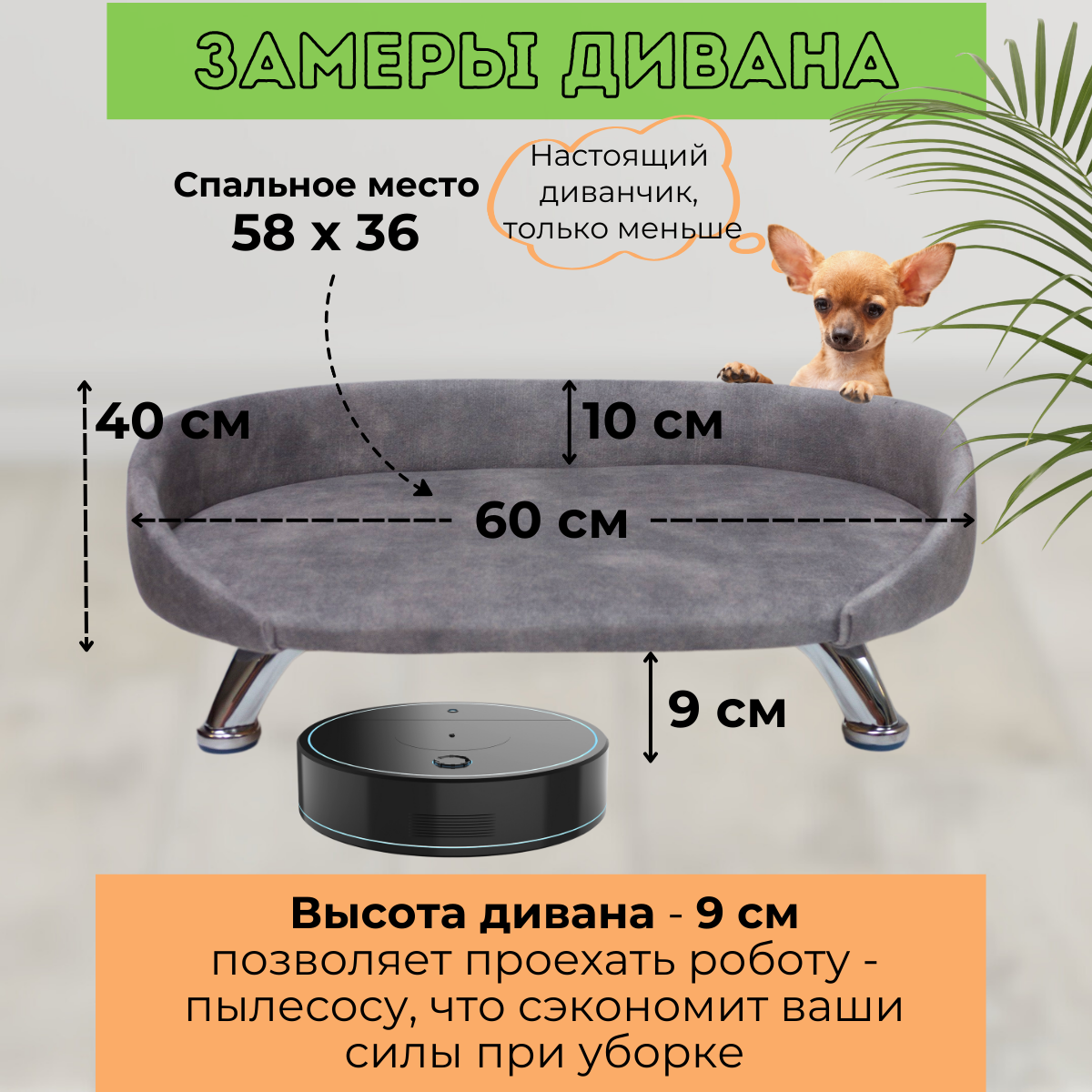 Подарите вашему четвероногому другу уютный отдых с лежанкой-диванчиком! Этот мягкий аксессуар станет настоящим спасением и для щенка, и для котенка. Компактная кровать отлично подходит мелким и средним породам, от громкого французского бульдога до игривого шпица. Подойдет также сфинксу или чихуахуа, йоркширскому терьеру. Изготовленное в ручную изделие выполнено из прочного антивальдального велюра, это практичный материал устойчив к когтям животного. Легко чистится, в отличии от пушистого, что позволяет поддерживать место питомца в идеальной чистоте без усилий. Мягкая спинка и бортик кровать для кота на ножках, создают защиту от сквозняков, добавляя дополнительный комфорт. Собачьим друзьям и кошачьим компаньонам понравится их новый диванчик! Ортопедическая подушка дарит удобство даже самым привередливым питомцам: мопс и йорк будут чувствовать себя как дома. Лежанка для котов высокая мягкая плюшевая. А надежный каркас из фанеры гарантирует долговечность — можно быть уверенным, что лежак прослужит долго. Котикам всех пород понравится возможность потянуться на комфортном спальном месте. А коты среднего размера найдут укромный уголок домик для отдыха благодаря компактному дизайну дивана-кровати. Мелкие породы тоже останутся довольны, ведь эта удобная лежанка — просто находка! Маленький аксессуар удивительно вместительный: напоминает настоящий мебельный предмет, только в миниатюре. Поверхность рассчитана так, чтобы животным было удобно расположиться и поиграть или подремать после активных прогулок. Такой товар для животных станет не только любимым местом отдыха вашего друга, но и стильным дополнением мебели интерьера в вашем доме! Каждый любитель животных оценит удобство этой многофункциональной вещицы: забота о комфорте питомца никогда не выглядела так стильно! Лежак прекрасное приобретение для владельцев любого породы домашнего любимца. Независимо от того каков ваш выбор — кот или собачка - диванчик поможет создать комфортные условия всем животным без исключения.