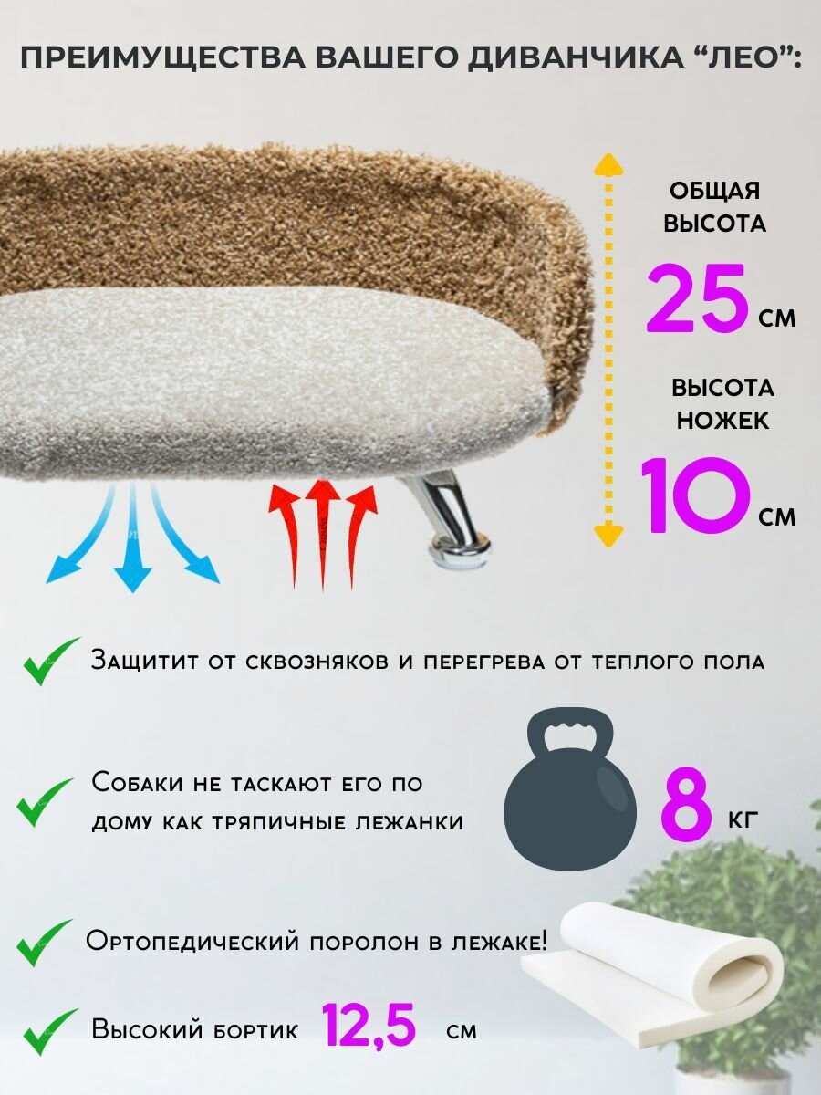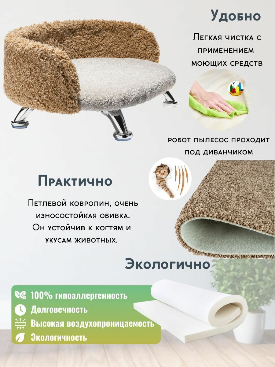 Купить Лежанка для кошек, диван для собак средних и крупных пород Chauzi Ля Premium ковролин-анти коготь, лежак для животных на ножках с бортиками, 90*50 см, Белый — Кэмел с доставкой по всей России.