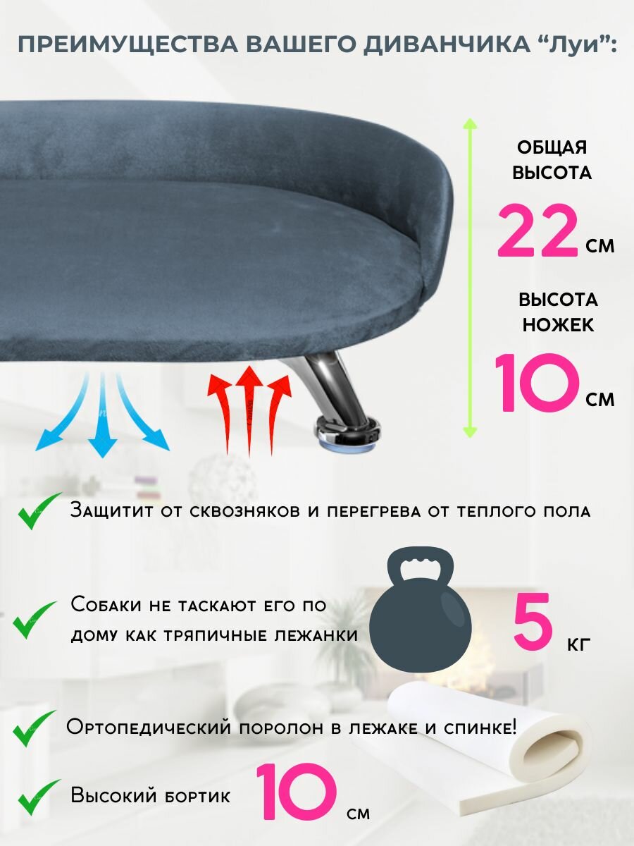 Лежанка для кошек и собак «Луи» диван из Premium мебельной ткани микровелюр для мелких и средних пород 70*50 см.: сравнение цен, характеристики, фото, актуальное наличие и цены.