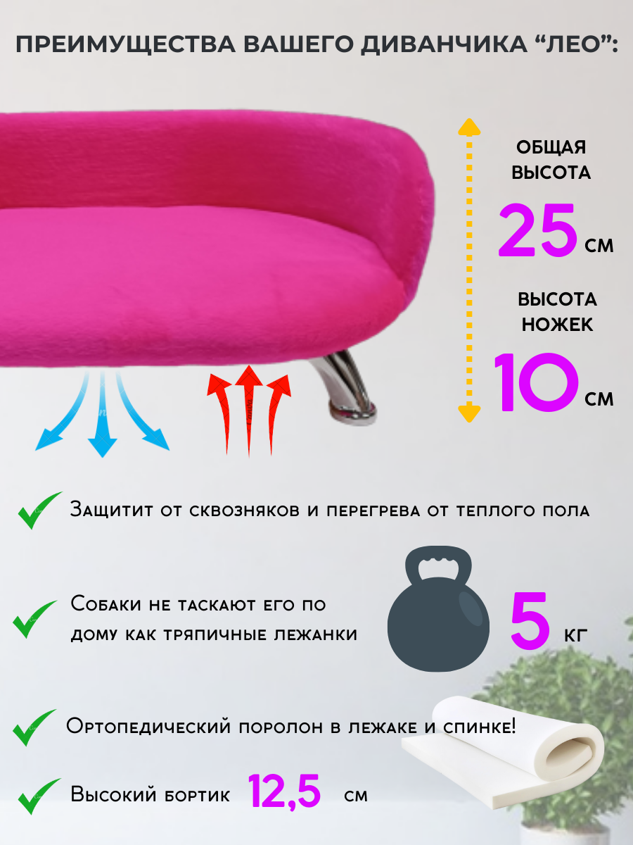 Лежанка для кошек и собак мелких и средних пород, диван Chauzi Лео ЭКОмех премиум, с бортиками, 70*50 см, Розовая: сравнение цен, характеристики, фото, актуальное наличие и цены.