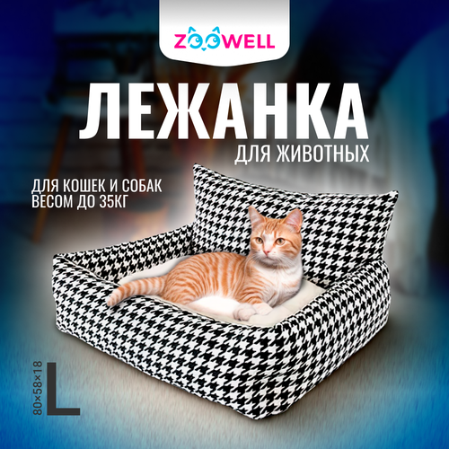 Лежанка для собак и кошек ZOOWELL Диван Гусиная лапка с бортиками и съемным пуфом, размер L 80*58*18см: сравнение цен, характеристики, фото, актуальное наличие и цены.