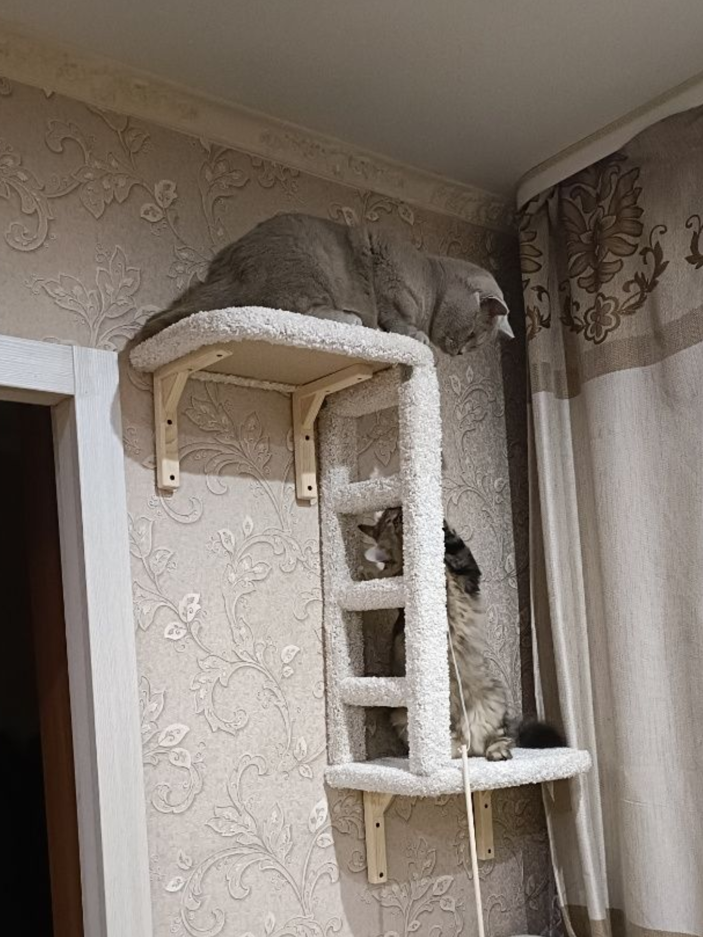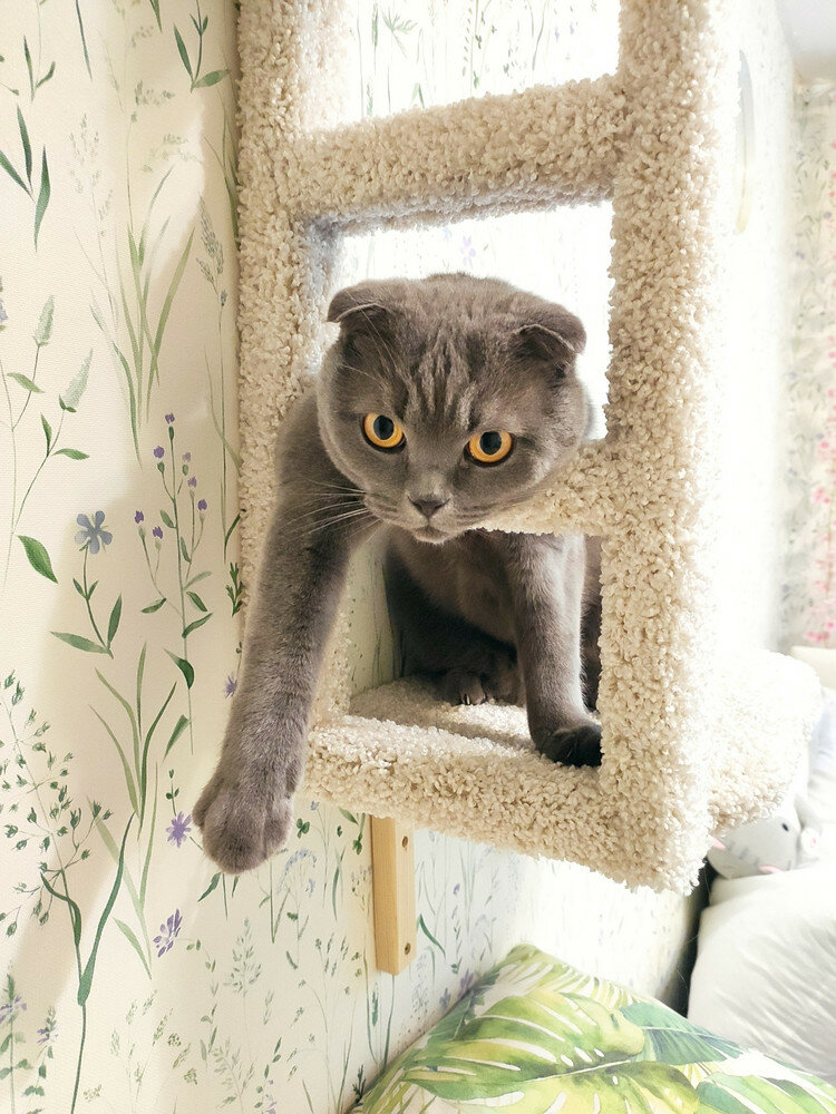 Лежанка на стену — отличный выбор для котиков, которые любят отдыхать на высоте. Несколько таких лежанок — это уже настоящий кошачий игровой комплекс!