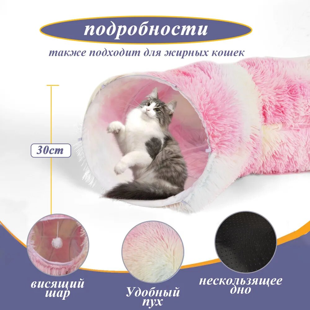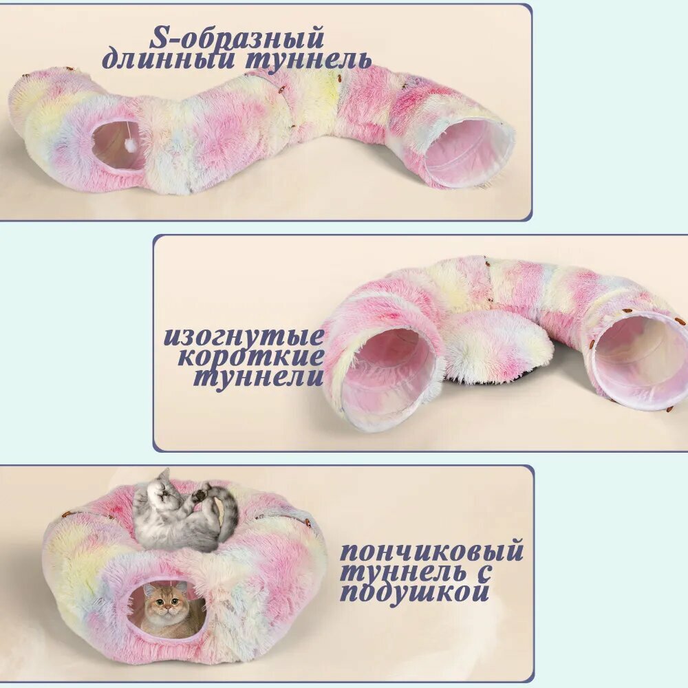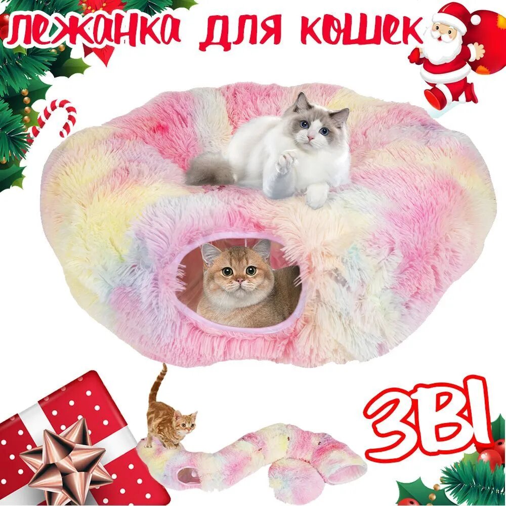 Лежанка для кошек, тоннель для кошек игровой, домик для кошки, 3 в 1, 950 мм, розовый: сравнение цен, характеристики, фото, актуальное наличие и цены.