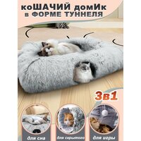 Купить Лежанка для кошек, тоннель для кошек игровой, домик для кошки, квадратный,3 в 1,110 мм, серый с доставкой по всей России.