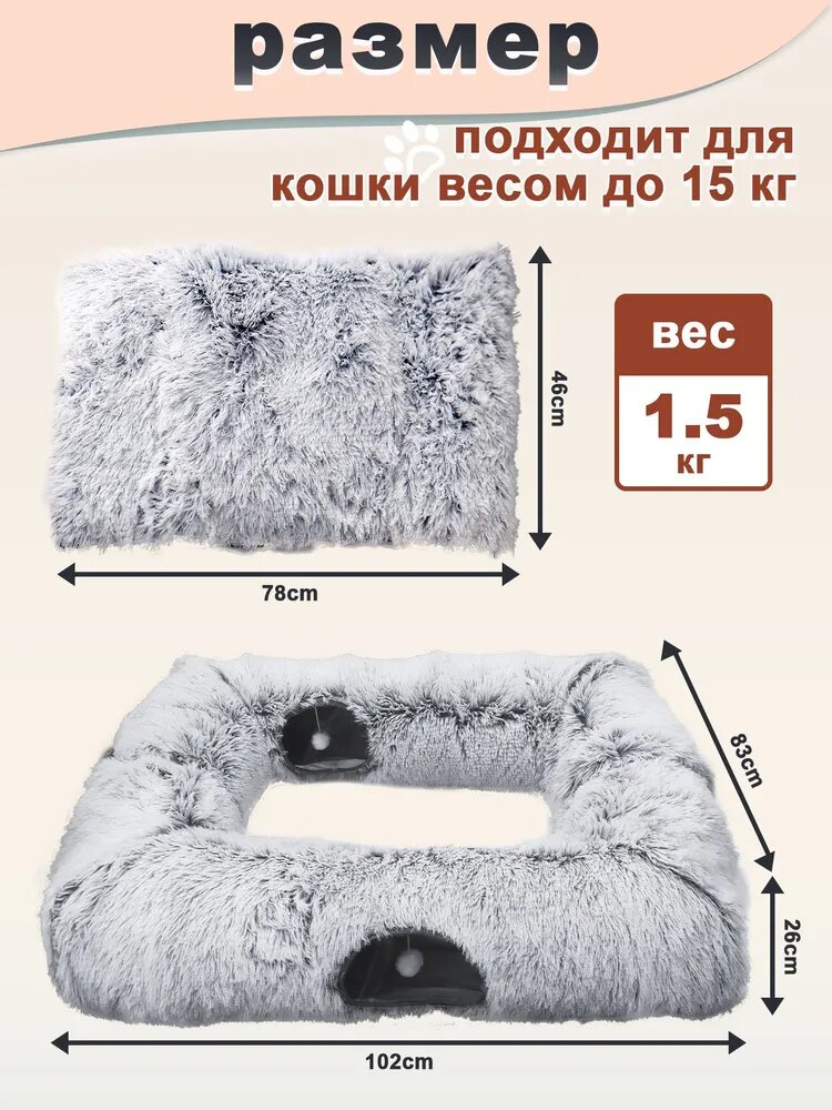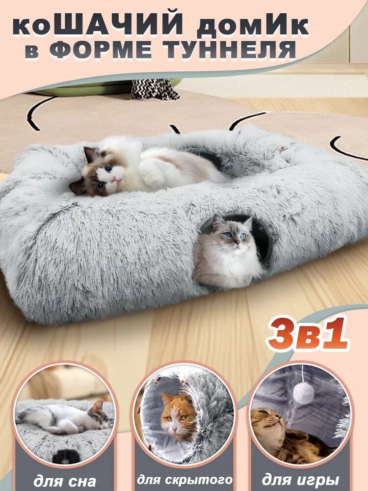 Лежанка для кошек, тоннель для кошек игровой, домик для кошки, квадратный,3 в 1,110 мм, серый: сравнение цен, характеристики, фото, актуальное наличие и цены.