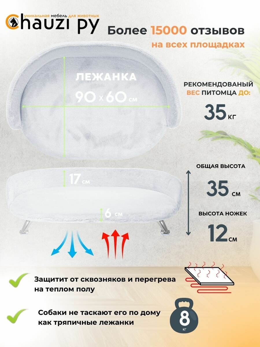 Лежанка для собак и кошек 90*60 см на ножках с бортиком, высокий, мягкий диван для средних и крупных пород, Chauzi ру