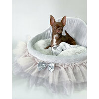 В таком лежаке питомцу открывается широкий обзор на все, что происходит вокруг. Подушка в лежанке съемная, ее можно достать и использовать как пышный матрас. Фатиновая юбка на лежаке фиксируется на резинке, поэтому ее можно снять.