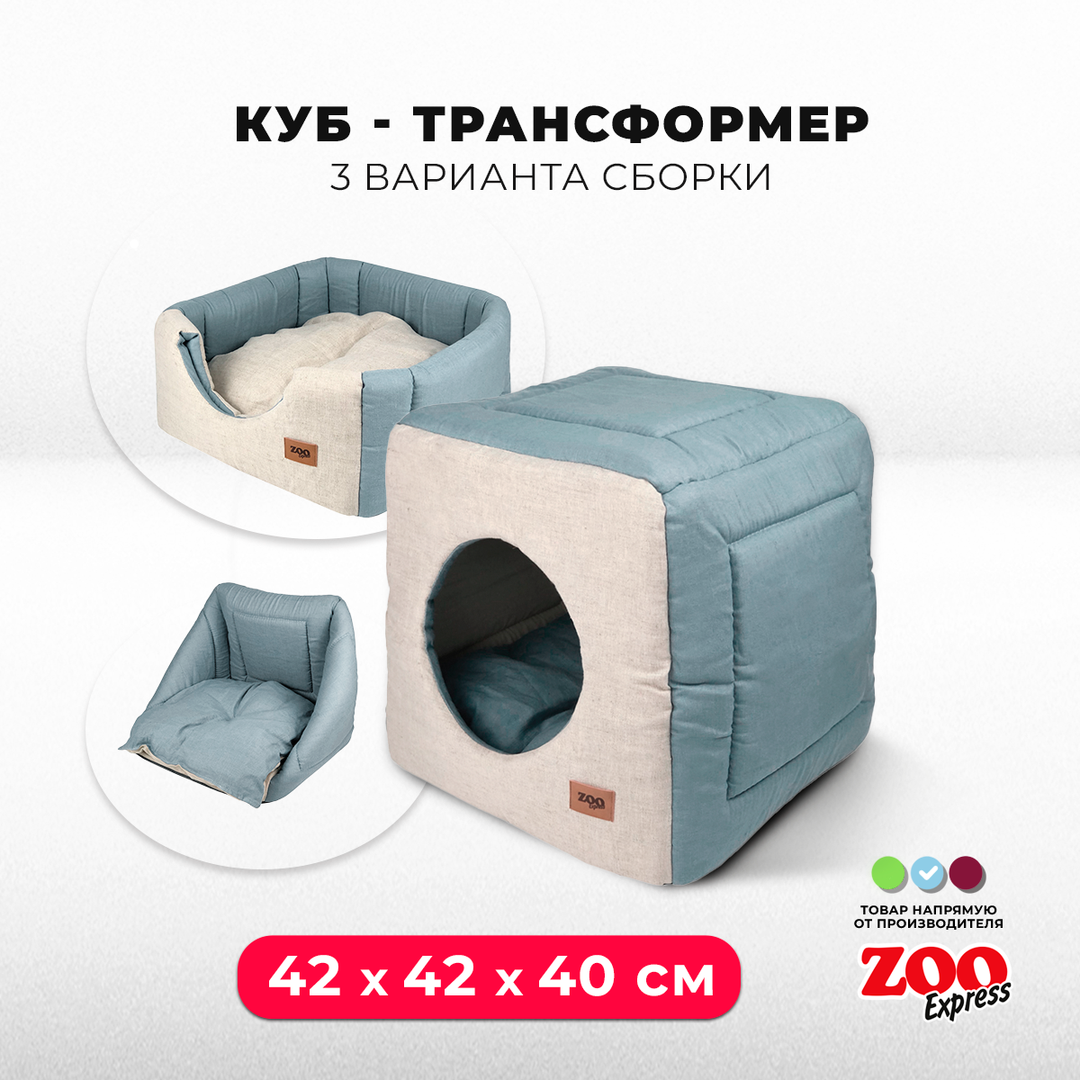 Лежанка для собак и кошек ZOOexpress «Куб-трансформер» Эколен №1, 42х42х40 см, голубой: сравнение цен, характеристики, фото, актуальное наличие и цены.
