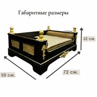 Каркас Лежанки выполнен из премиального массива дерева, покрытого гипоаллергенной краской, и золотой поталью. Элегантное сочение цветов позволяет вписать Лежанку в любой интерьер Вашего дома.