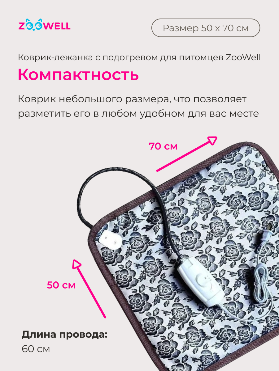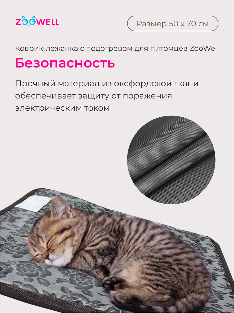 Лежанка коврик для домашних животных с подогревом ZooWell Home 50*70 см, цвет серый: сравнение цен, характеристики, фото, актуальное наличие и цены.