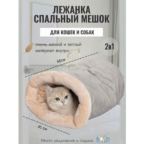 Лежанка-нора для животных станет отличным домик для вашего домашнего питомца. Мягкая и теплая лежанка-нора обеспечивает коту, кролику, хорьку или щенку комфорт и чувство защищенности. Размер норки 68*45 см позволит животному без труда принимать удобное положение для отдыха. Теплая и мягкая подкладка внутри лежанки-норы выполнена из приятного искусственного меха, который полюбит ваш маленьких друг. Данную лежанку для котов и маленьких пород собак можно использовать как 2 в 1: как тоннель - забираясь вовнутрь, а можно лечь сверху и тогда норка для животного превращается в подстилку или подушку. Спальный мешок-норку может разместить на подоконнике или батарее, а также на полу и даже кровати, то есть в любом уголке вашего дома. Подходит для кошек разных пород, а также для собак мелких пород, кроликов. Кошки бесшерстный и короткошерстных пород, таких как сфинкс, корниш-рекс будут в восторге от теплого и уютного домика.