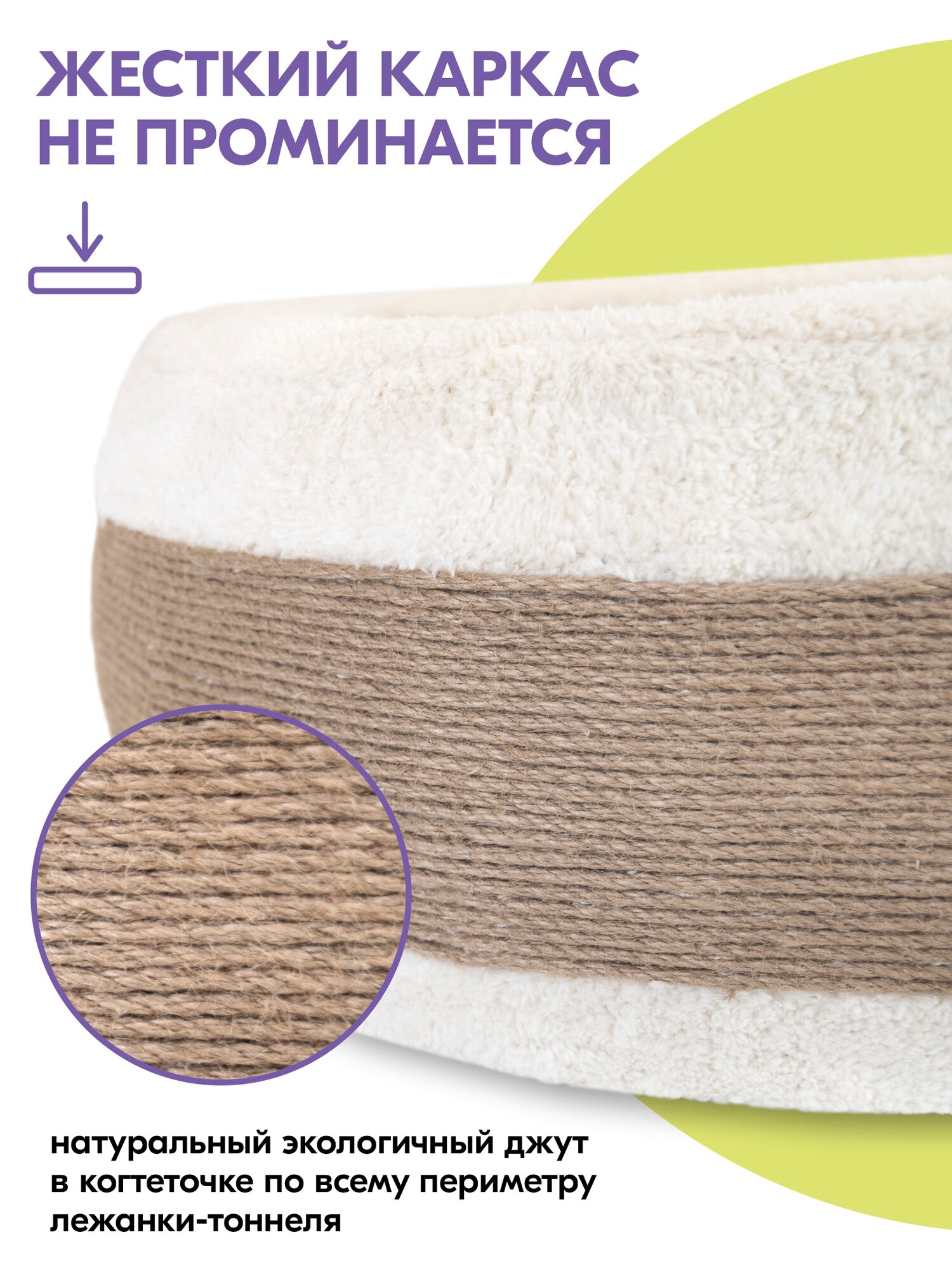 Лежанка с тоннелем «PetTails» круглая D59 х h21 см (МДФ, джут, мех искусственный) ангора: сравнение цен, характеристики, фото, актуальное наличие и цены.