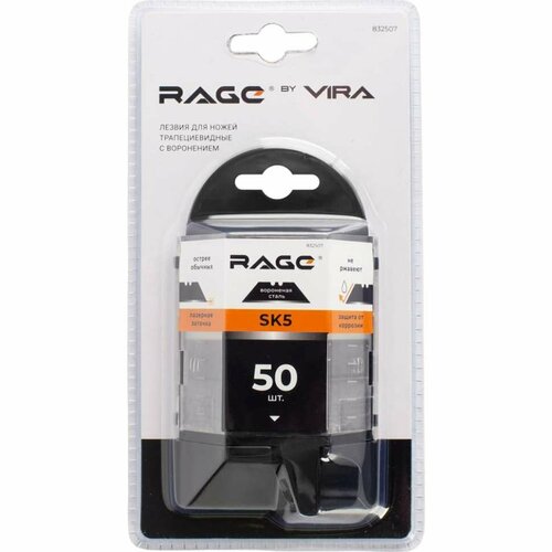 Лезвия для ножей трапециевидные воронёные 50 шт 19 мм RAGE by VIRA
