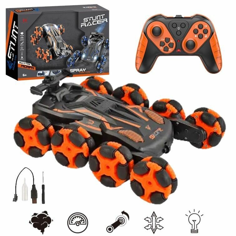 Купить LH-C060-1 Машинка перевертыш на пульте управления; игрушка Вездеход на радиоуправлении для мальчиков со светом и дымом оранжевый с доставкой по всей России.