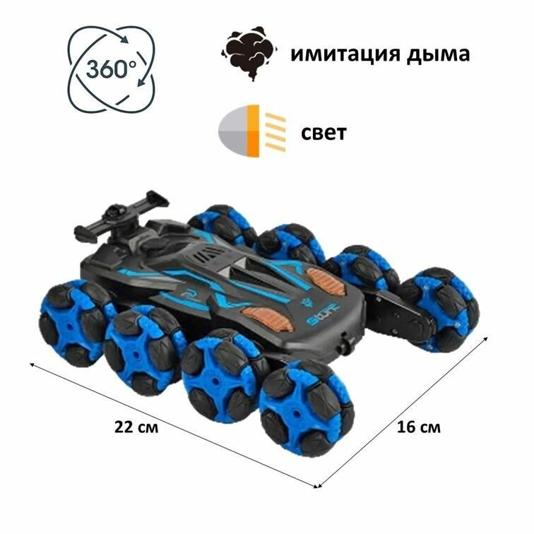 Купить LH-C060-1 Машинка перевертыш на пульте управления; игрушка Вездеход на радиоуправлении для мальчиков со светом и дымом синий с доставкой по всей России.