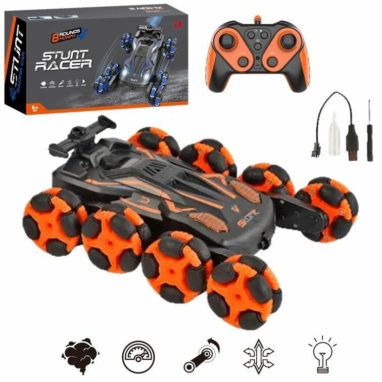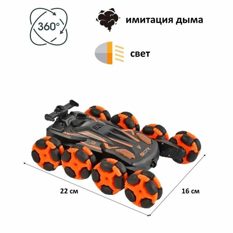 Купить LH-C060S-1 Машинка перевертыш на пульте управления; игрушка Вездеход на радиоуправлении для мальчиков со светом и дымом оранжевый с доставкой по всей России.
