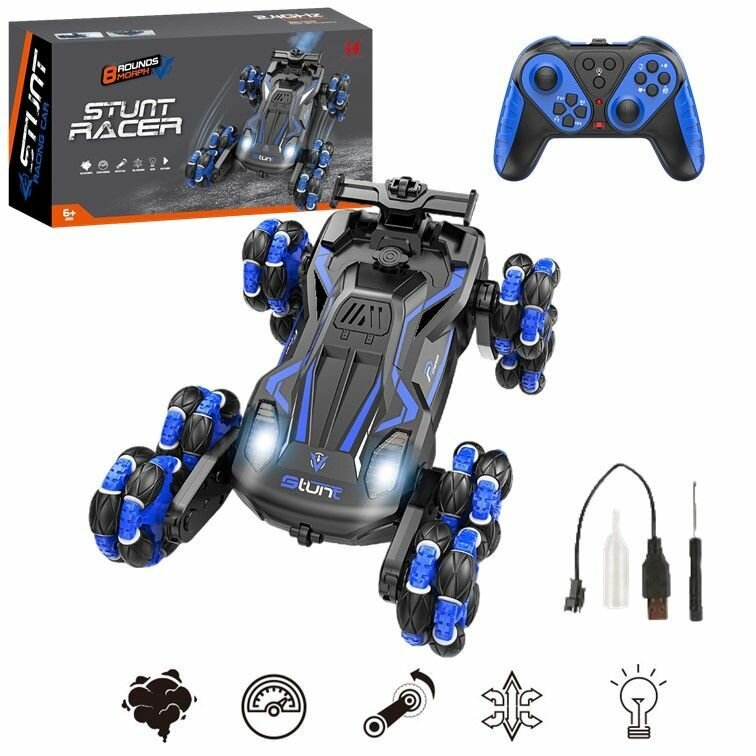Купить LH-C060S-1 Машинка перевертыш на пульте управления; игрушка Вездеход на радиоуправлении для мальчиков со светом и дымом синий с доставкой по всей России.