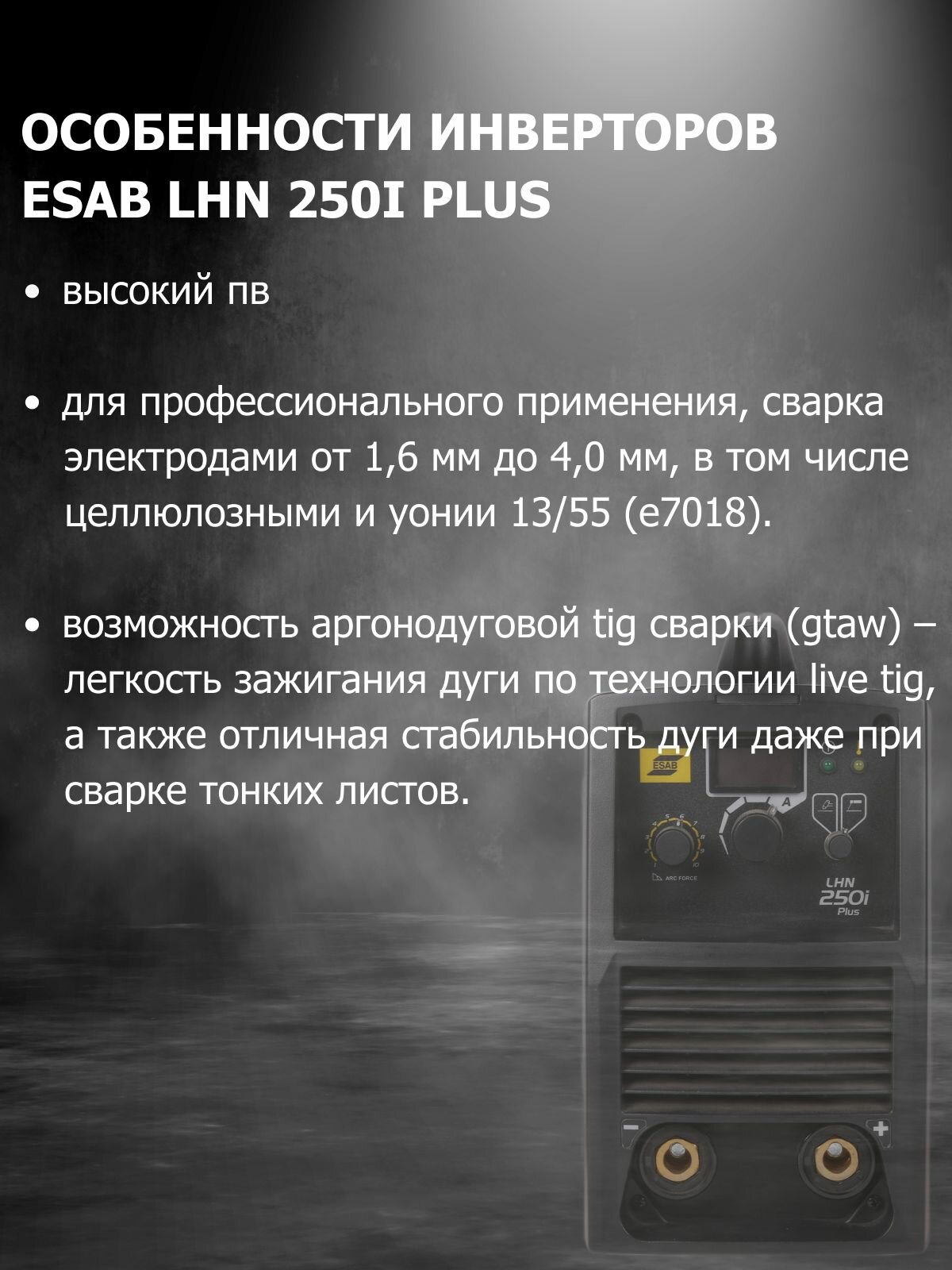 LHN 250i PLUS, ESAB сварочный аппарат для ручной дуговой сварки (MMA) Выпрямитель: сравнение цен, характеристики, фото, актуальное наличие и цены.