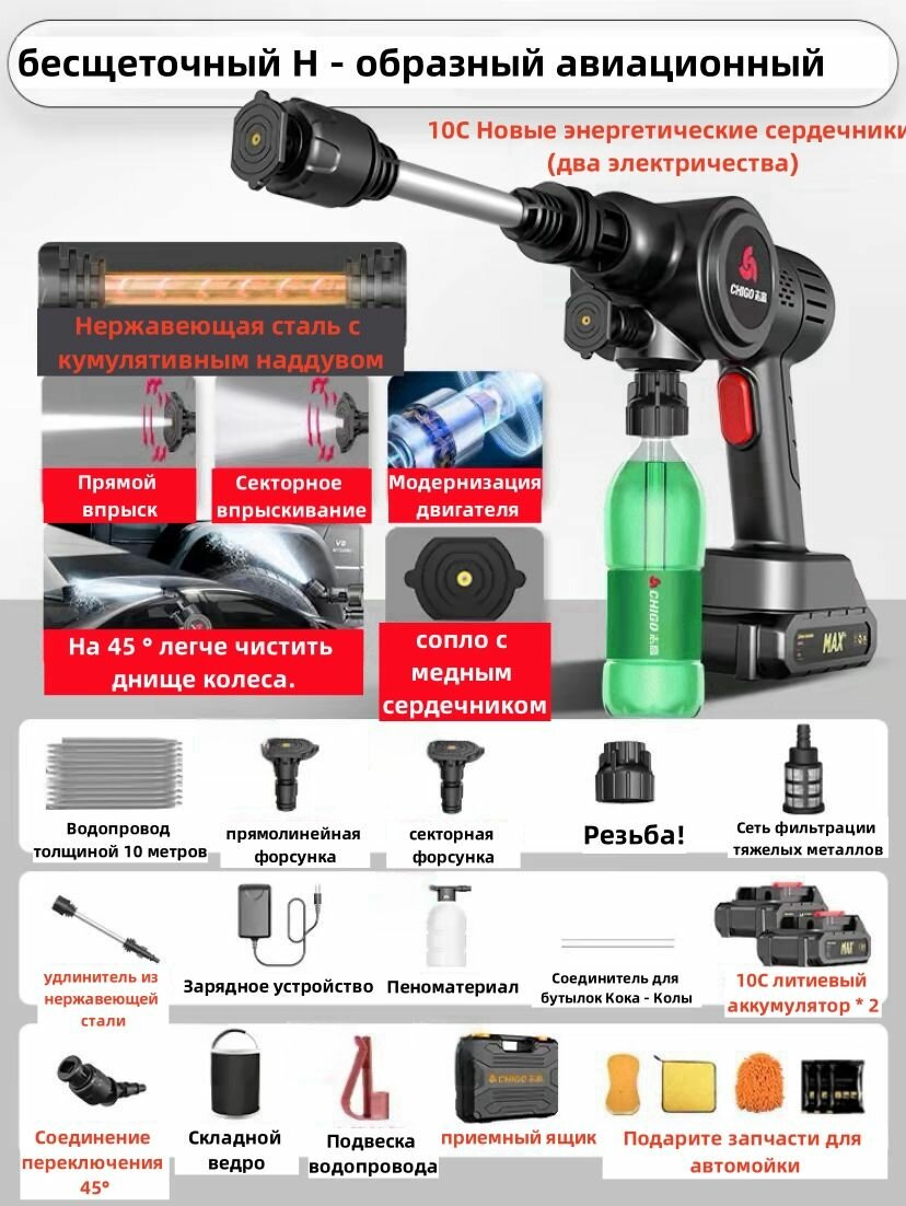 Купить CHIGO двойные аккумуляторы 7500 мАч, черный, Портативная аккумуляторная автомойка высокого давления с доставкой по всей России.