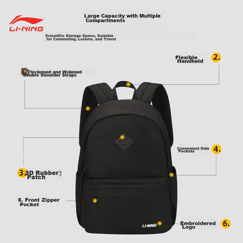LI-NING Backpack, Student Schoolbag for Men And Women, Large Capacity Sports Backpack, Travel Bag for Middle And High School Students, Hiking Outdoor Laptop Bag: сравнение цен, характеристики, фото, актуальное наличие и цены.