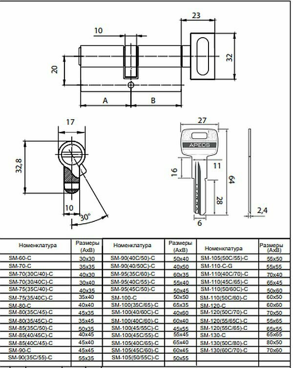 Личинка для замка (цилиндровый механизм) Апекс SM-85 35×50 мм Ключ-вертушка: сравнение цен, характеристики, фото, актуальное наличие и цены.