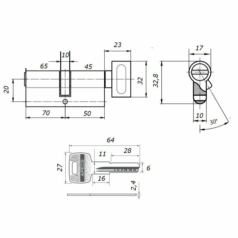 Личинка замка 120 мм (70х50) с вертушкой со стороны 50 и перфоключами Apecs SM никель цилиндровый механизм: сравнение цен, характеристики, фото, актуальное наличие и цены.