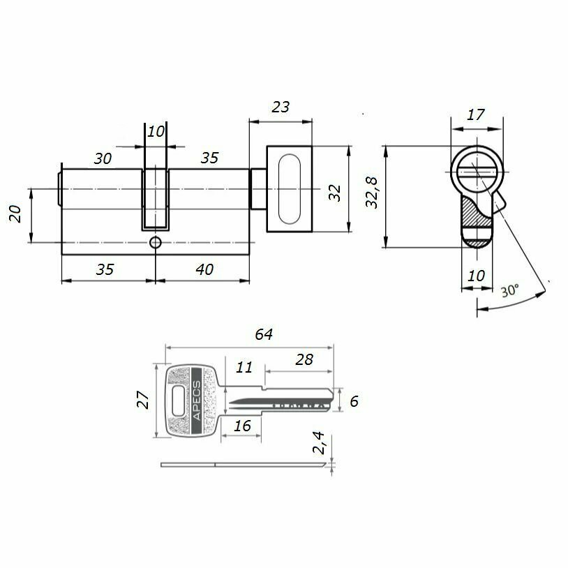 Личинка замка 75 мм (35х40) с вертушкой со стороны 40 и перфоключами Apecs SM никель цилиндровый механизм: сравнение цен, характеристики, фото, актуальное наличие и цены.