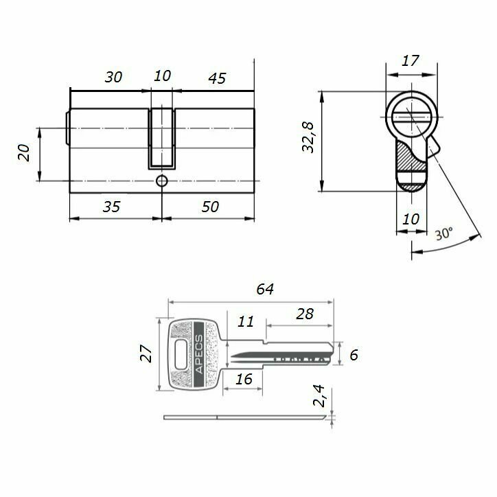 Личинка замка 85 мм (35х50) с перфоключами Apecs SM никель цилиндровый механизм: сравнение цен, характеристики, фото, актуальное наличие и цены.