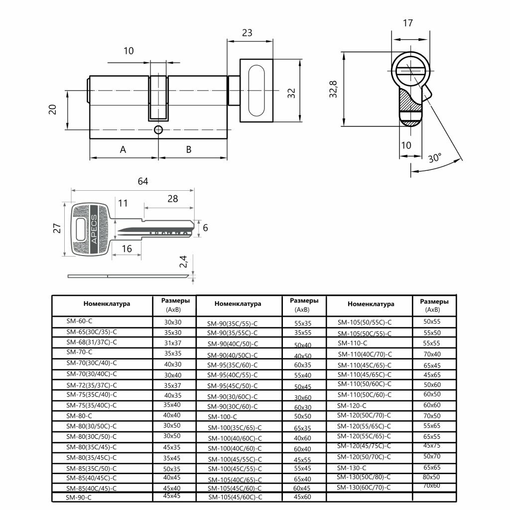 Цилиндровый механизм Apecs SM-85(40/45C)-C-NI, никель: сравнение цен, характеристики, фото, актуальное наличие и цены.