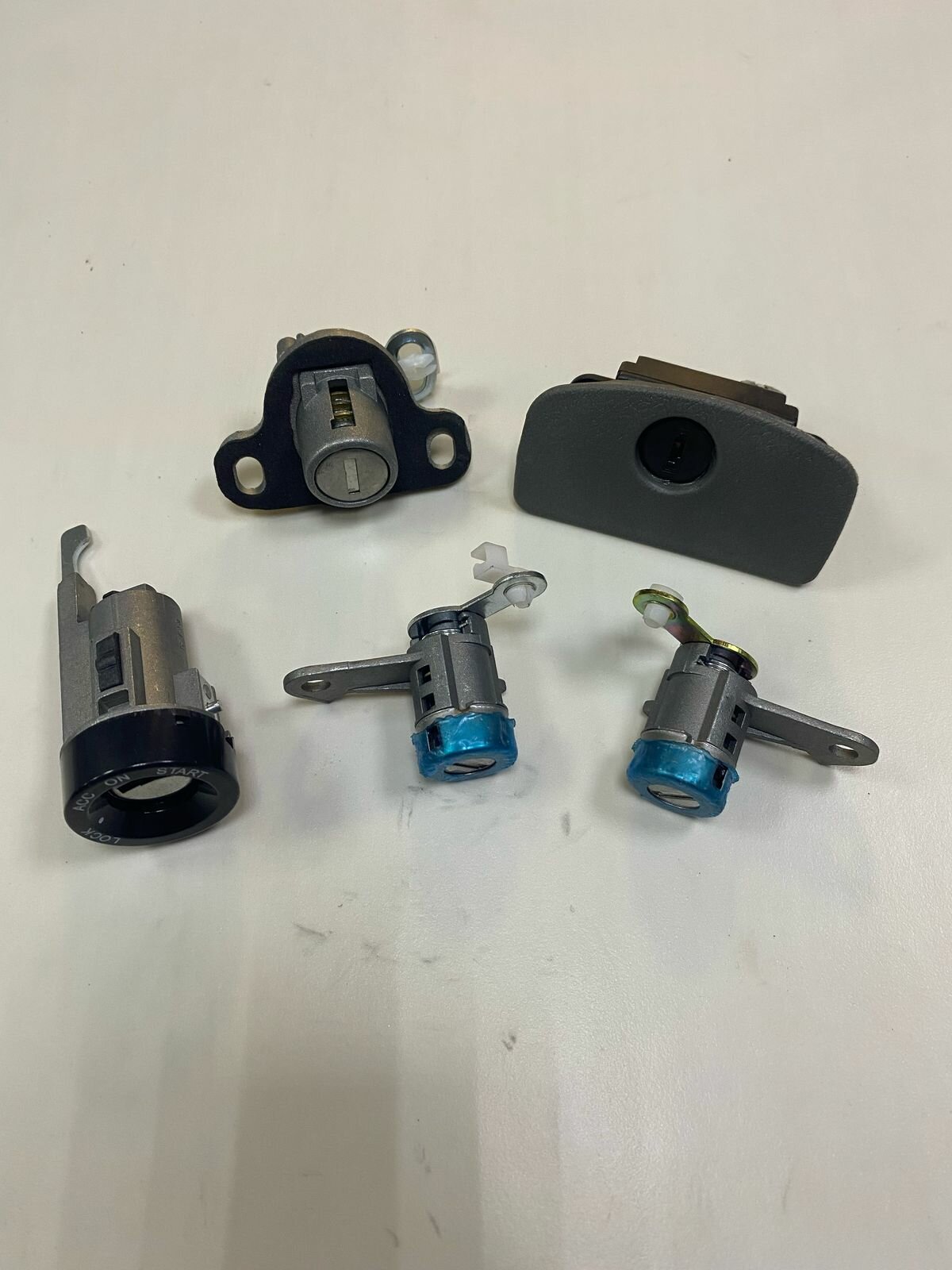 В комплекте поставки вы найдете личинки зажигания, дверные личинки (левая и правая), личинку бардачка и личинку замка багажника. Два новых ключа в комплекте.