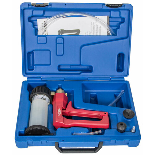 Комплект из 22 предметов в пластиковом кейсе позволяет создавать разрежение при проведении проверок от 0 до -1 кг/см² (атм).