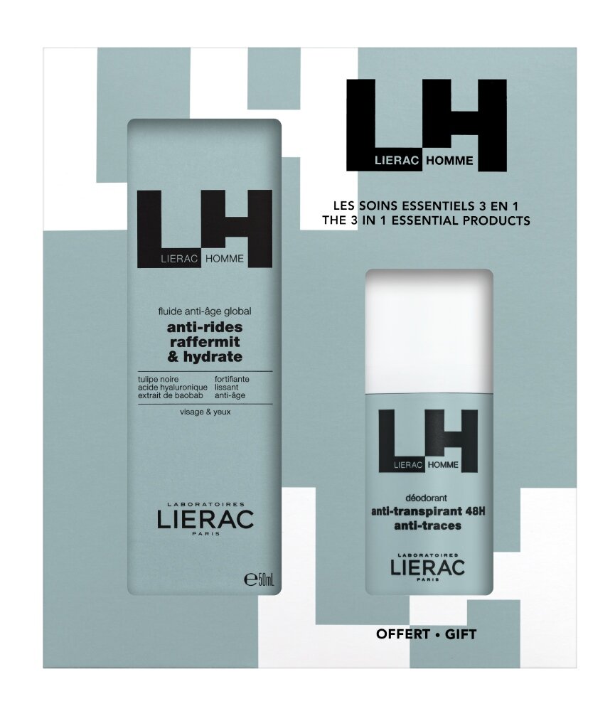 Подарочный набор для мужчин Lierac Homme: крем-флюид антивозрастной 50 мл + шариковый дезодорант 48 ч 50 мл