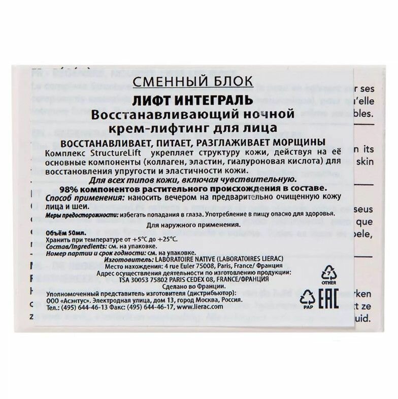| Эффект | восстановление, лифтинг, омоложение, от морщин, питание, повышение упругости, тонизирование, увлажнение, улучшение цвета |