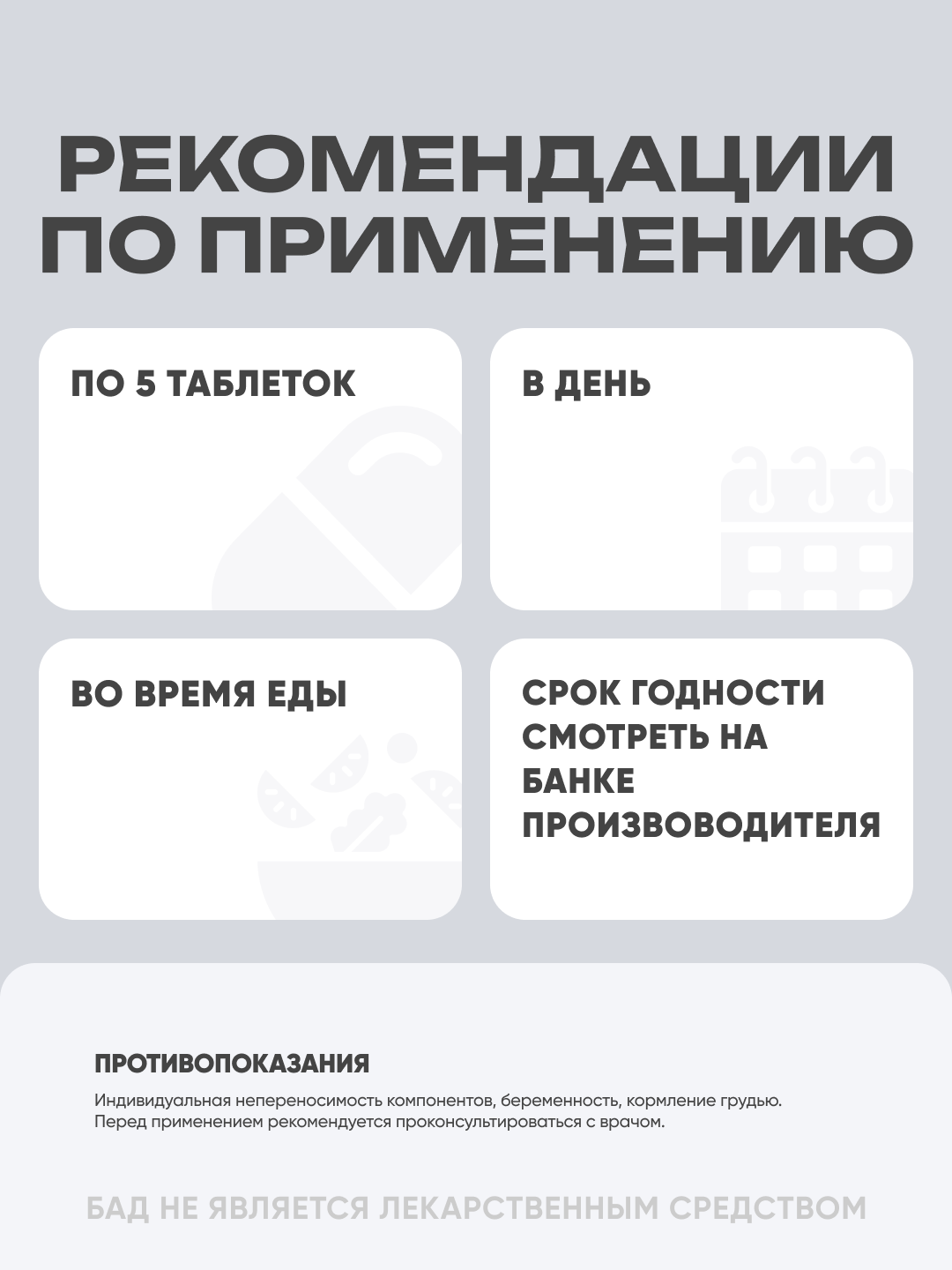 - Удобная форма: Таблетки легко принимать, что делает добавку удобной для ежедневного использования.