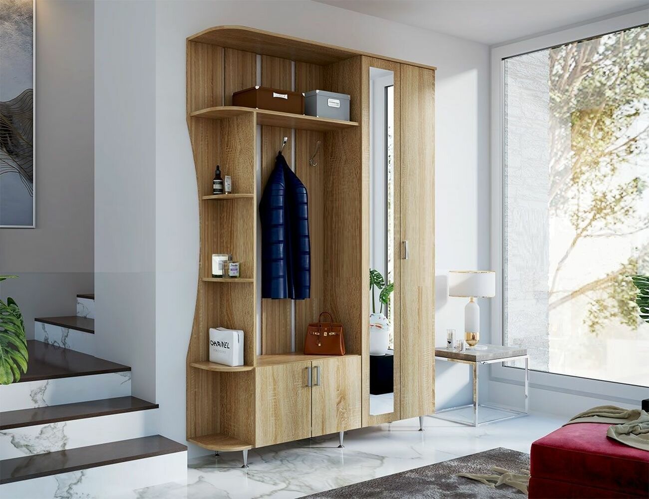 Прихожая мебель в коридор Лика-1 дуб сонома, модульная комплект с зеркалом: сравнение цен, характеристики, фото, актуальное наличие и цены.