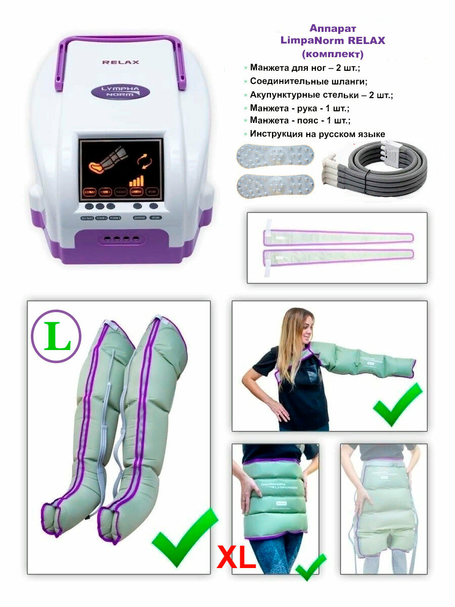Массажер RELAX LymphaNorm для ног L с поясом XL и рукой, лимофдренажный, для похудения, 4 камеры, 2 режима, от сети: сравнение цен, характеристики, фото, актуальное наличие и цены.