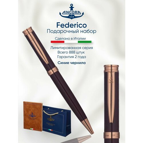 Откройте для себя исключительную элегантность шариковой ручки Ancora 1919 Italia "Federico". Этот роскошный пишущий инструмент является вершиной утонченности и выдающимся образцом в серии Elegance. Ограниченный выпуск всего в 888 ручек на весь мир, эта изысканная ручка является данью одному из величайших режиссеров всех времен, Федерико Феллини. Роскошное покрытие из бордового лака прекрасно дополняется деталями из розовой позолоты, создавая вечный дизайн, который излучает утонченность. Идеально сбалансированная для комфортного удержания и плавного письма, каждая ручка воплощает элегантность и превосходное мастерство. Ручка "Federico" сертифицирована производителем, что делает ее идеальным подарком или личным удовольствием. Ощутите исключительность и позвольте вашим словам течь с элегантностью ручки Federico, которая воплощает изысканный вкус и сентиментальность, создавая незабываемые воспоминания.
