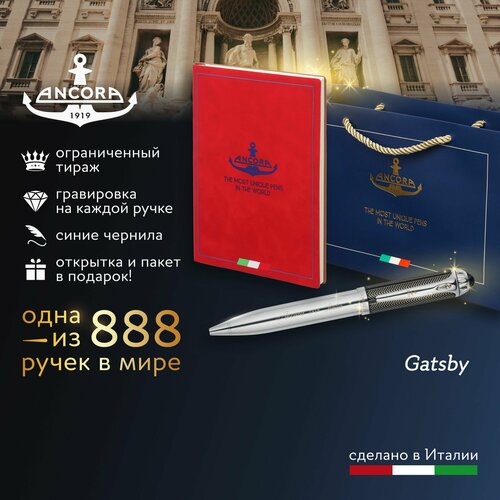 Погрузитесь в роскошь бурных двадцатых годов с шариковой ручкой "Gatsby". Этот изысканный пишущий инструмент, созданный уважаемой мануфактурой Ancora 1919 Italia, воплощает элегантность и великолепие эпохи арт-деко. Ограниченная серией всего в 888 экземпляров, вечная ручка "Gatsby" является роскошным предметом коллекционирования, излучающим утонченность и стиль. Ее изысканный дизайн и премиальные материалы делают ее настоящим шедевром, идеальным для тех, кто ценит лучшие вещи в жизни.
