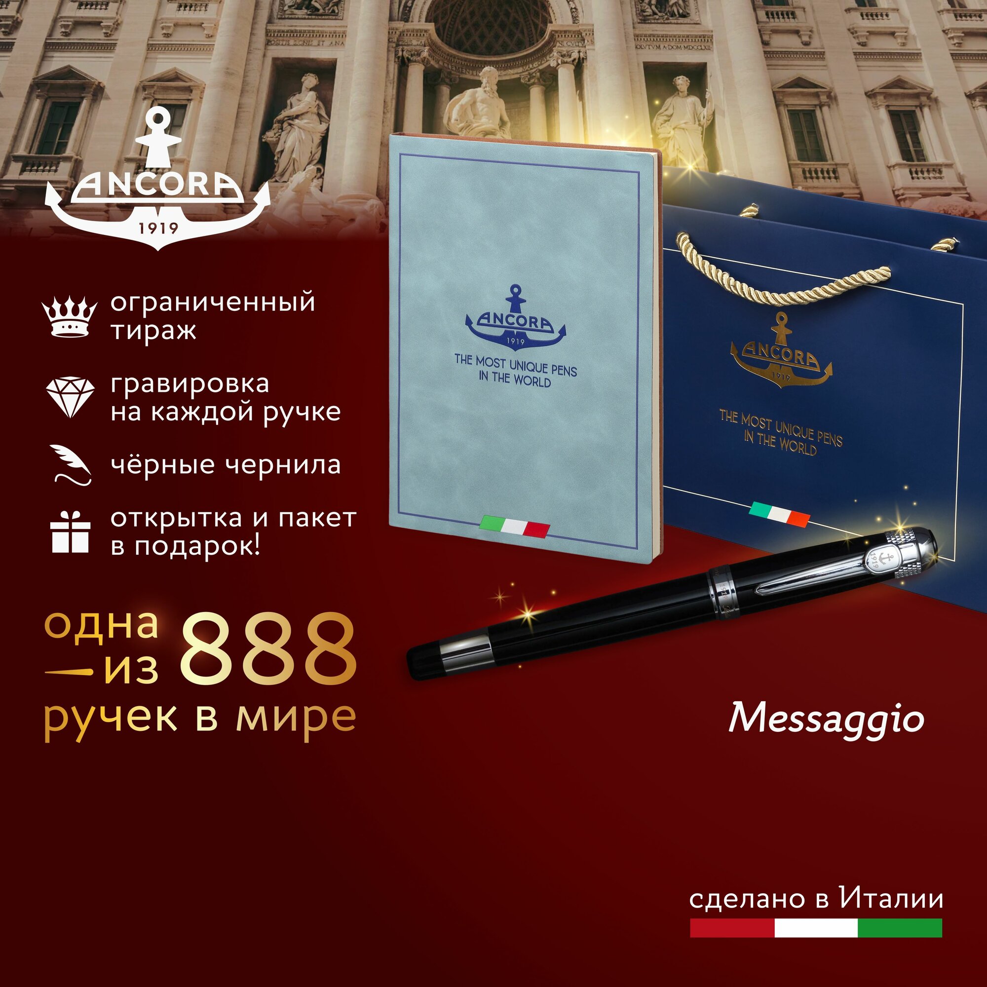 Купить Подарочный набор Ancora шариковая ручка «Messaggio» ежедневник А5 и фирменный пакет, ограниченный тираж 888 шт. с доставкой по всей России.