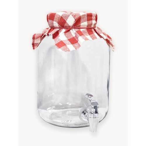 Стеклянная банка 5л с пластмассовым краном для холодных напитков.