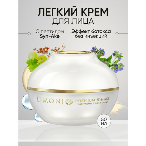 Купить LIMONI Антивозрастной легкий крем для лица со змеиным ядом Premium Syn-Ake Anti-Wrinkle Cream Light 50 мл 50 г 1 шт. стеклянная банка с доставкой по всей России. LIMONI Антивозрастной легкий крем для лица со змеиным ядом Premium Syn-Ake Anti-Wrinkle Cream Light 50 мл 50 г 1 шт. стеклянная банка: сравнение цен, характеристики, фото, актуальное наличие и цены.