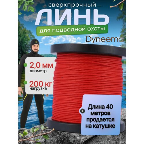 Шнур Dyneema длиной 40 м и толщиной 2.0 мм из cверхвысокомолекулярного полиэтилена (свмпэ, UHMW PE), красный. Мягкий, плавающий, не растягивается, отлично подходит для катушки, и в качестве основного линя. Вы можете купить отрезки по 5, 10, 20, 30, 40, 50 метров или катушку 100 метров. Этот высокопрочный линь прекрасно показал себя как в пресной, так и в солёной морской воде, он является одним из прочнейших шнуров в своём классе. Материал из которого создан линь предназначен для работы в экстремальных условиях эксплуатации. Минимальная растяжимость материала линя дополнительно уменьшена конструктивно – путём предварительного натяжения с нагрузками приближенным к разрывным. Долговечности линя также способствует практически нулевая гигроскопичность (водопоглощение) материала, то есть он не впитывает воду и его, в отличии от лески, не нужно просушивать после каждой охоты. И в отличии от кевлара, при намокании, он практически не меняет своих свойств. Уникальная пропитка полиуретановой дисперсией с повышенным содержанием связующих веществ производится для более прочного прилегания нитей друг к другу и дополнительной его защиты от мельчайших абразивных частиц, неизменно присутствующих в воде. Последующая термофиксация и особое покрытие защищают наш линь от нежелательных механических воздействий, например от зубов крупной хищной рыбы или острых краёв камней и кораллов, что увеличивает долговечность линя примерно на 60%, как в пресной, так и в солёной воде, даже при интенсивной эксплуатации. Стойкость материала линя к ультрафиолету не позволяет ему стремительно «стареть» из-за длительного нахождения под прямыми солнечными лучами. А нелюбовь микроорганизмов к материалу из которого изготовлен линь позволяет ему не быть источником неприятных запахов даже при минимальном обслуживании и редком обеззараживании после охоты. Практически полное отсутствие так называемого эффекта «памяти» благодаря плетёной конструкции линя приводит к тому, что он почти не меняет свои характеристики в процессе эксплуатации. Для устранения даже мельчайших шероховатостей не видимых не вооружённым глазом, готовый шнур подвергается дополнительной финишной полировке. В итоге очень низкий коэффициент трения линя позволяет ему легко сходить с линесброса или катушки и проходить через щель катушки или бегунок ровно и гладко, не образовывать петли и минимизировать вероятность образования «бород» в руках мало-мальски подготовленного охотника.