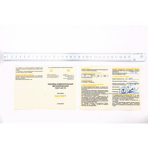 Линейка 300 мм ГОСТ 427-75 госповерка (паспорт) нержавеющая сталь метрическая шкала