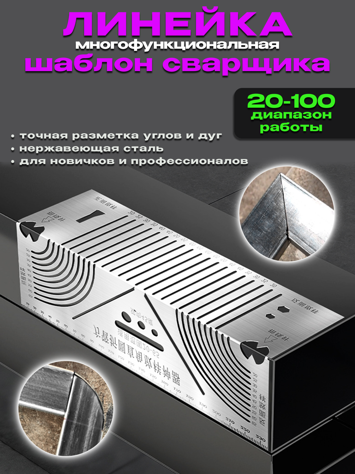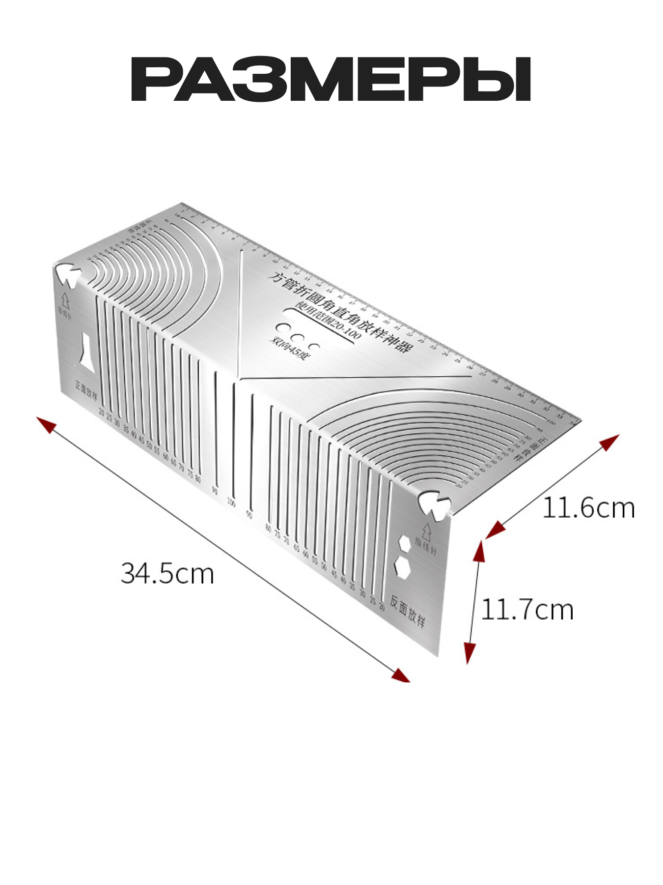 Шаблон сварщика линейка строительная для профильной трубы. Многофункциональный измерительный инструмент для точных работ по металлу и дереву сочетает в себе функции линейки, угольника и шаблона. Угловой шаблон идеально подойдет для подарка любимому мужчине! Угольник для дуг изготовлен из нержавеющей стали, что обеспечивает долговечность при использовании в строительстве, кузовных или слесарных работах. Универсальный угловой шаблон с разметочной шкалой позволяет быстро выполнять замеры под углом 90 градусов, а также контролировать гибки и контуры профильных труб. Этот уголок незаменим для мебельщика, сварщика и столяра благодаря удобной трафаретной маркировке для разметки фигур и дуг. Инструмент подходит для работы с деревянными элементами дома и на стройке, обеспечивая точные измерения при резке и сборке конструкций. Ручной комбинированный инструмент шаблометр помогает быстро разметить профильный угол под сварку или сборку мебели, упрощая процесс разметки. Угольник строительный подойдет как профессиональным так сварщикам новичкам, благодаря точным разметкам. Линейка для профильной трубы избавит Вас от изнурительных вычислений и замеров. Универсальный помощник в столярных и слесарных работах сэкономит Вам уйму времени и поможет вырезать ровный угол в 90 градусов и не только. Инструмент для маркировки не заменимый помощник сварщика в доме и на предприятии. Достигайте совершенства в металлообработке и столярных работах с помощью инструмента для рисования линий. Линейка сварщика измеритель сварочных швов всегда должен быть под рукой у сварщика.
